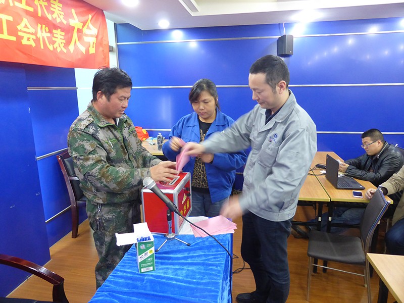 11月8日,我公司召開十六屆職代會和十五屆工會代表大會,70名正式代表和19名特邀列席代表出席了大會,大會聽取了韓剛同志代表上屆“兩會”所作的工作報告,聽取了王建穎同志代表“經(jīng)審會”所作的公司工會經(jīng)費使用情況報告,大會按選舉辦法選舉王學(xué)忠、王建穎、宋志華、孟暾輝、姜冰峰、施守林、康明敏、韓剛、裘磊為新一屆公司工會委員,選舉宋志華、錢蔚心、裘磊為新一屆經(jīng)審會委員。王建穎為女工委主任。黨委書記鄭建華同志向大會作了“擔(dān)負起聯(lián)系群眾的橋梁與紐帶的作用”的報告。大會在《咱們工人有力量》的雄偉歌聲中結(jié)束。