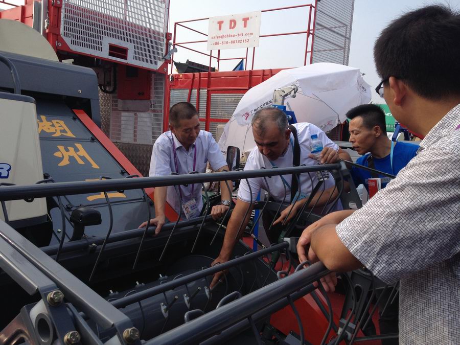 農(nóng)機工程機械展區(qū)分布于B區(qū)室外,展位溫度較高,但這絲毫沒有降低參展商和采購商的熱情。來此參觀的采購商對思達的收割機產(chǎn)生了濃厚的興趣,盡管是第一次參加廣交會,但還是得到了不少的收獲。幾天來有交流接觸洽談的客戶幾乎涵蓋了整個非洲,南美,中東和東南亞,還有部分來自英美等發(fā)達國家的客商也對我們的產(chǎn)品有一定的興趣。不僅人數(shù)眾多,而且對產(chǎn)品洽談非常仔細,相信未來思達收割機產(chǎn)品的國外市場應(yīng)該會有一個很好的發(fā)展前景。